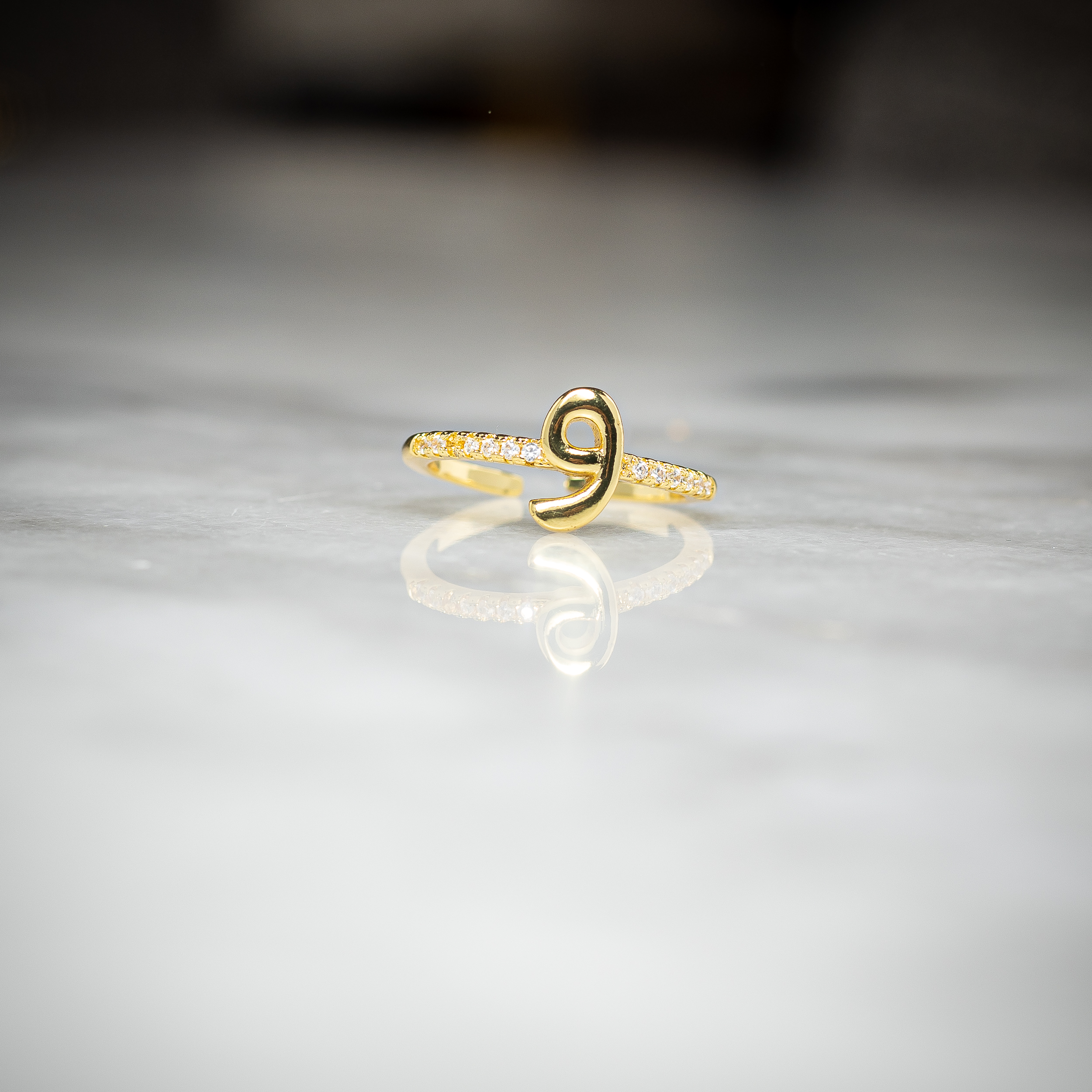 Arabic Letter Gold Plated Ring (non tarnish), with zircon stones.