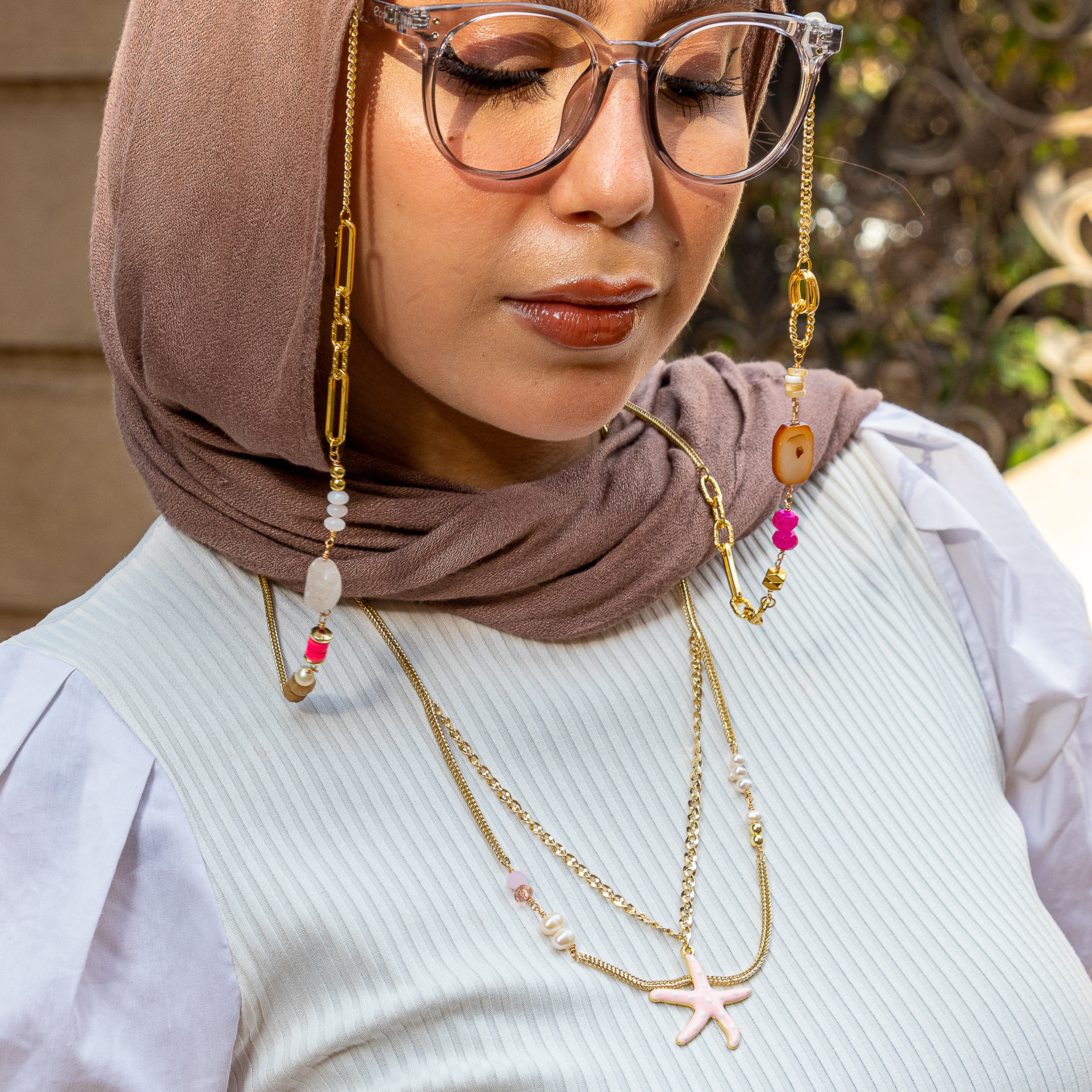 Sunglasses Cord made with goldplated chains (non tarnish), gemstones.